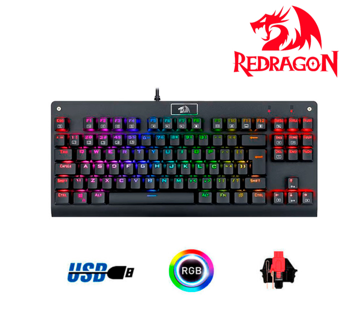TECLADO REDRAGON DARK AVENGER RGB K568RGB-SP (SW-ROJO) NEGRO